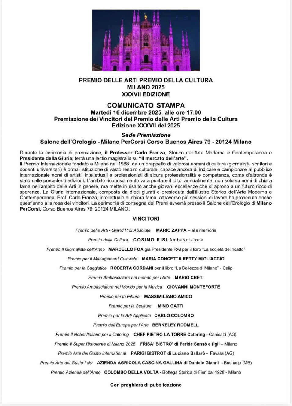 ***************** IL Premio delle Arti della Cultura 2025 a Giovanni Monteforte